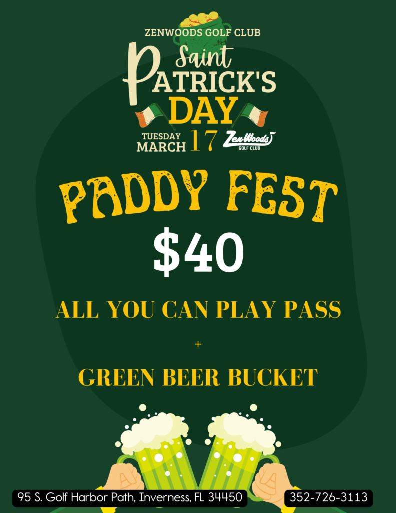 Join us Tuesday, March 17th for our Paddy Fest celebration featuring an All You Can Play Pass and a Green Beer Bucket for just $40. Grab your crew, wear your green, and spend the day on the course with cold beer, Irish favorites, and nonstop fun.