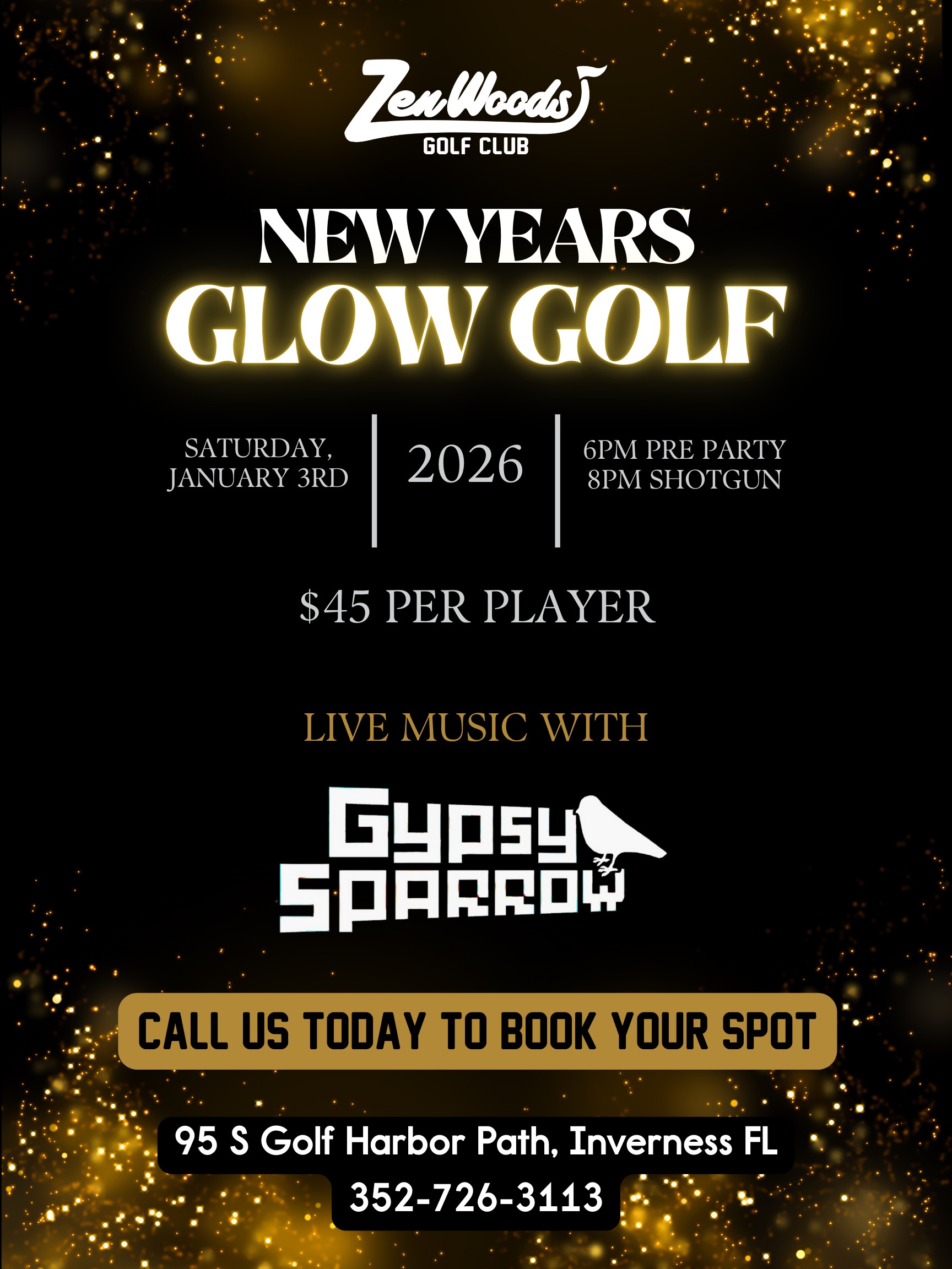 Kick off 2026 the ZenWoods way—with an unforgettable night of glow-in-the-dark golf, live music, great food, and an atmosphere unlike anything else in Florida. Join us on Saturday, January 3rd